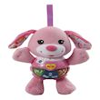 - Différentes textures pour éveiller la curiosité de Bébé : corps en plastique, tête et pattes en tissu tout doux et oreilles en tissu satiné.