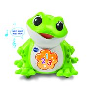 Avec Pop, ma grenouille hop hop, en avant pour des aventures chantantes et rebondissantes ! Grâce à ses quatre coussinets animés, Pop la grenouille s'amuse à rebondir pour amuser Bébé et l'inciter à l'attraper.Complète, elle possède deux modes de jeu : - Un mode 'Suis-moi !' pour encourager l'enfant à l'imiter. Elle parle, chante, et se met à sauter partout ! - Un mode 'Découvertes' pour découvrir les caractéristiques principales d'une grenouille, le tout accompagné de chansons, de mélodies et de sauts.Le bouton Fleur lumineux situé sur son ventre permet de déclencher des sauts, mais aussi des chansons, des sons et des phrases amusantes. 3 chansons et 12 mélodies. Arrêt automatique. Fonctionne avec 4 piles LR6 fournies.