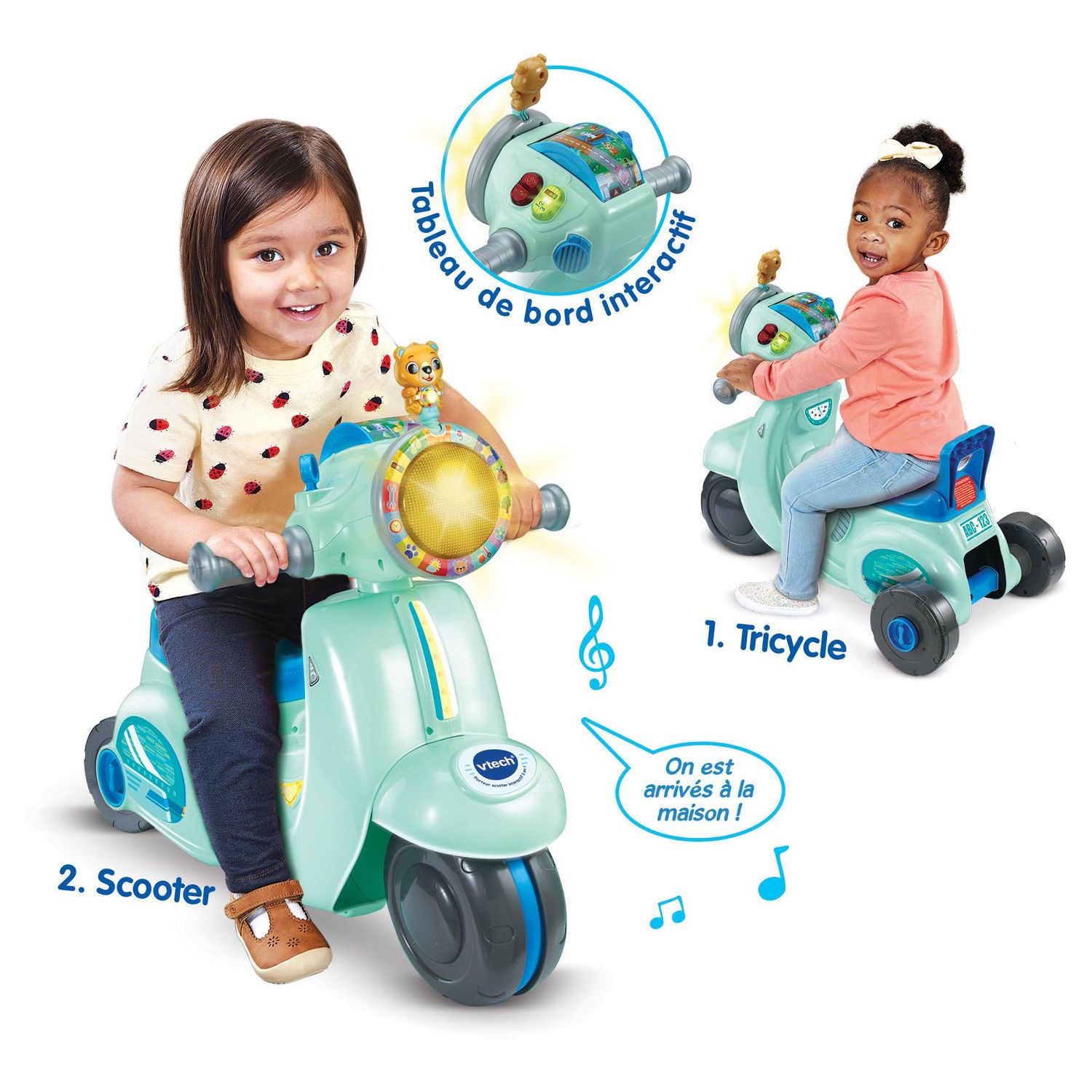 Un porteur interactif en forme de scooter pour que Bébé explore tout en apprenant ! Évolutif, il se transforme facilement en mode tricycle pour plus de stabilité ou en mode scooter sur 2 roues pour les plus grands !