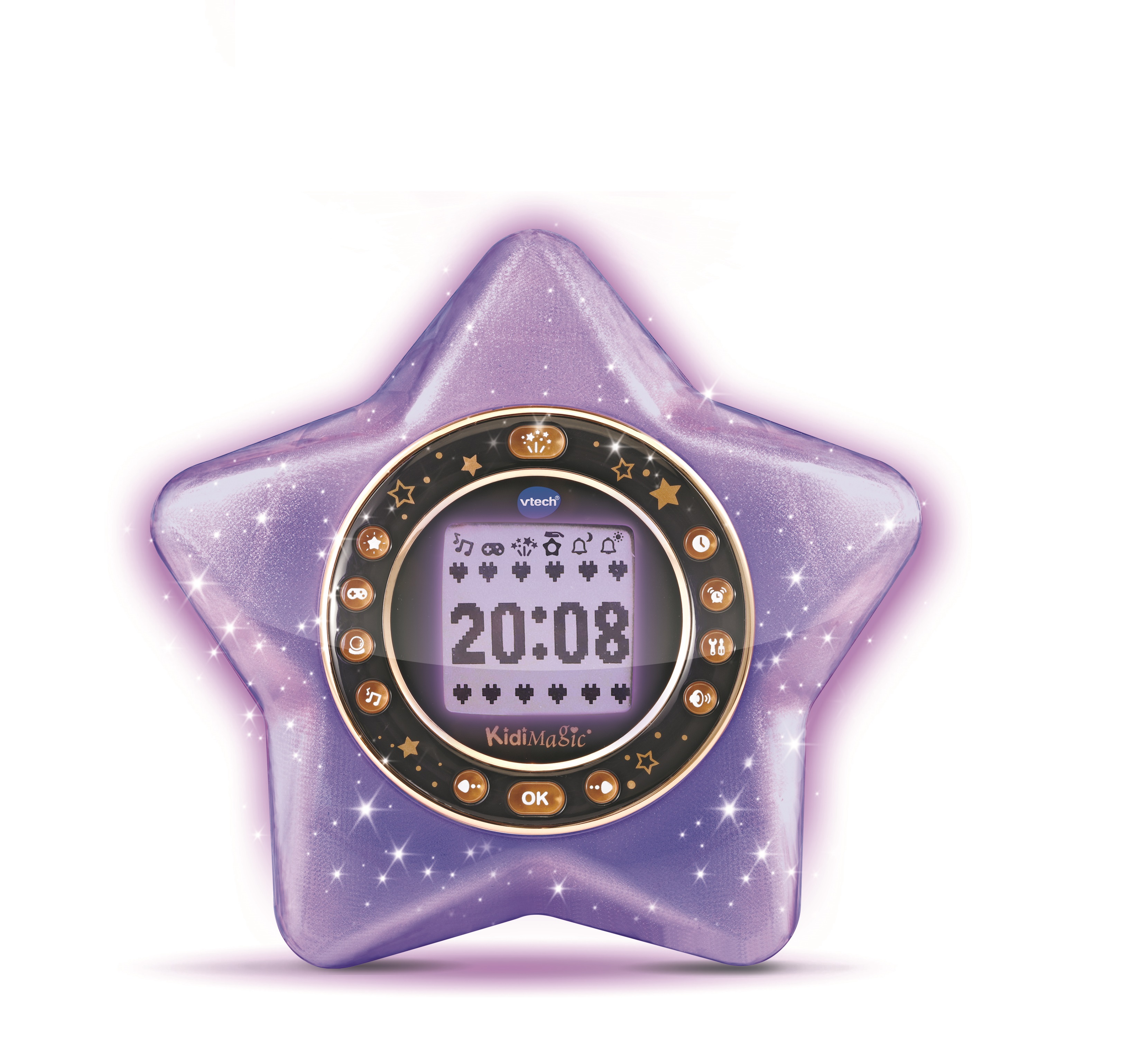 - Magique ! Grâce à la projection animée, la petite fille découvre l’heure entourée d’étoiles scintillantes ou de fleurs.