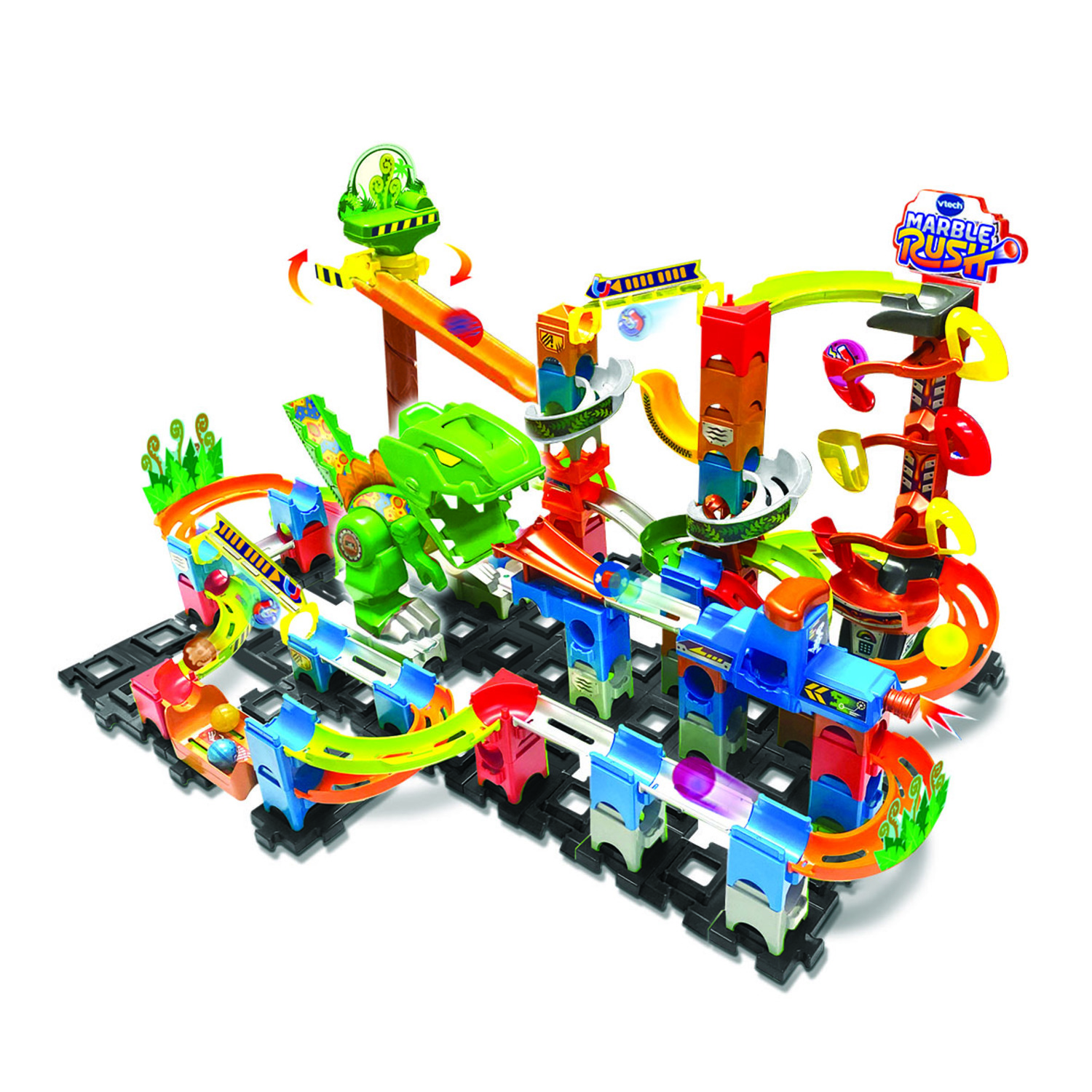 Marble Rush - Dino Adventures Magnetic Set XL400E - 4 ans + Un circuit impressionnant avec 100 pieces et 10 MableBilles dont 5 métalliques pour découvrir l'univers des dinosaures ! Incroyable ! Grâce aux billes métalliques et aux nouvelles pieces de construction, ce circuit Marble Rush est doté d