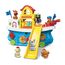 Le bateau propose également de nombreuses activités manuelles comme des engrenages, une fenêtre qui s'ouvre, un drapeau rotatif, et un bouton qui lance les animaux sur le toboggan. Avec sa cordelette, les enfants peuvent tirer le bateau partout, activant des mélodies entraînantes, et utiliser la cale pour ranger tous les animaux et accessoires.