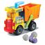 Le camion avance et déclenche sons, mélodies et effets sonores réalistes grâce au capteur de mouvement (3 chansons et 9 mélodies). La benne bouge quand le camion avance. L'enfant ouvre la benne et déploie une piste de lancement. Placé sur le lanceur, le bolide descend sur la piste bosselée à toute vitesse