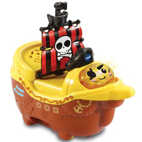 Découvre des animaux et des bateaux interactifs pour des heures de jeu dans le bain !Ils flottent sur l’eau et peuvent aussi s’utiliser sur le sol grâce à leurs petites roues. Les Tut Tut Marins parlent, chantent et s’illuminent comme les autres Tut Tut. L’enfant peut également manipuler certaines parties (pinces du crabe, nageoires…). Un bouton lumineux en forme de visage rigolo déclenche 4 chansons, des phrases et des effets sonores réalistes. Les Tut Tut Marins sont compatibles avec le système de détection « Aquaclips magiques » qui déclenche des phrases et des sons supplémentaires. Contient 4 chansons rigolotes et 10 mélodies.