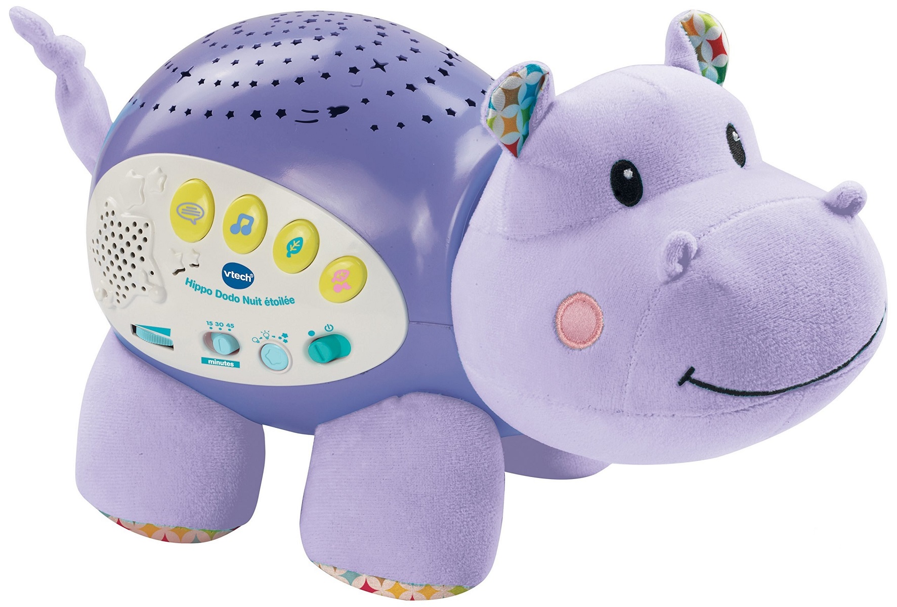J'ai acheté en 1ère intention l'ourson dodo nuit étoilée qui a duré 3 semaines, j'ai donc pris l'hippo en remplacement le 8 janvier , il n'a jamais fonctionné, j'ai contacté le sav v-tech aucune réponse, je vais donc rapporter l'hippo, la minuterie ne fonctionne pas correctement à peine 2 minutes au lieu des 45 sélectionnées et ne réagi pas au pleure de bébé la nuit, c'est dommage