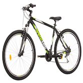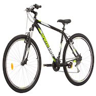 VTT 27.5'' avec cadre en aluminium de 480 mm, equipé d'une fourche télescopique, de freins V-Brake avec étriers et leviers en aluminium, dérailleur avant et arrière Shimano TY300, cassette Shimano 7 vitesses TZ500, Poignées Revoshift Shimano SL-RS35, Potence HeadSet Zoom, Cintre Logan de 600 mm, Jan