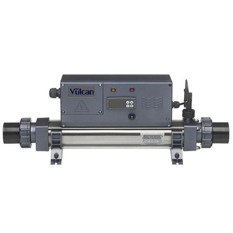 Vulcan V-8T89-D Le réchauffeur V-8T89-D de VULCAN a été conçu dans des matériaux et composants d'une qualité supérieure dans l'usine d'Elecro à Hertfordshire au Royaume-Uni.Le réchauffeur V-8T89-D fonctionne sur tous types de piscines, qu'il s'agisse de petites piscines autoportées, piscines hors-so