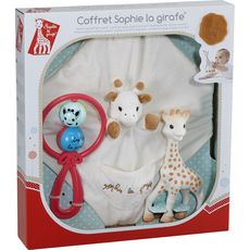 Super ce coffret Sophie la girafe de Vulli comprenant les indispensables afin de souhaiter la bienvenue à bébé ! Un coffret riche en découvertes et en activités pour éveiller les sens de bébé.