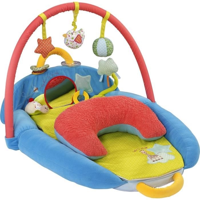 - Pour plus de sécurité : une base anti-dérapante, des clips en plastique pour fixer solidement l'arche, un coussin pour caler bébé et des rebords de sécurité