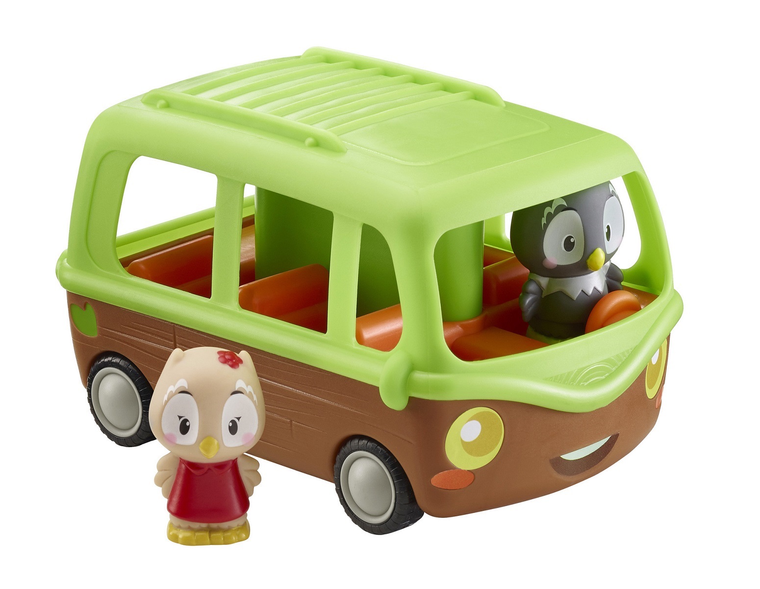 Pars à l'aventure avec le Bus Aventure, Il est indispensable pour pouvoir voyager entre les univers Klorofil ! Le bus fonce grâce à son système de rectro friction. Il y a 6 places disponibles et un grand coffre pour mettre les valises de tout le monde. Pour monter à bord, il faut appuyer sur le toit... "Pop!, le bus s'ouvre et se referme c'est génial.
