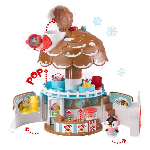 Au rez-de-chaussée, « POP » ! 3 sucreries à faire sauter à l'aide de boutons. Amusant, il suffit de faire tourner le rouleau pour choisir son parfum de glace.