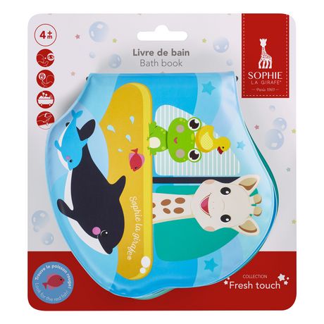 Pour animer le bain de bébé, au fil de 8 pages bébé découvre Sophie la girafe et ses amis. Ludique et coloré, il permet a bébé de se raconter plein d'histoires lors du bain. Rigolo, bébé s'amuse a retrouver le petit poisson rouge qui se cache sur chaque page. En EVA, facile a nettoyer pour une hygie