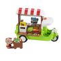 Tut tut ! Axel de la famille Raccoon passe avec son marché ambulant. Une fois garé, Axel installe son petit marché. En appuyant sur le toit, les petits dès 18 mois ouvrent le marché avec l'effet "POP" et les 2 côtés se déplient pour faire apparaître les étales de fruits et de légumes. En appuyant su