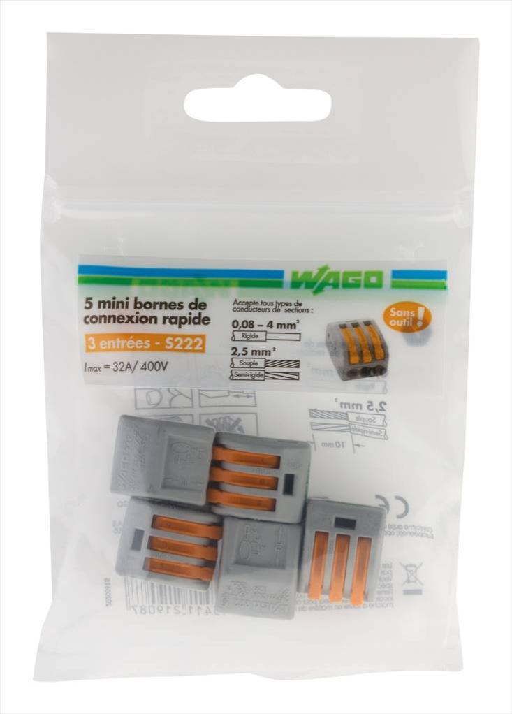 - Composition de l'assortiment: WAGO 5 BORNES S222 3FILS 2.5MM²