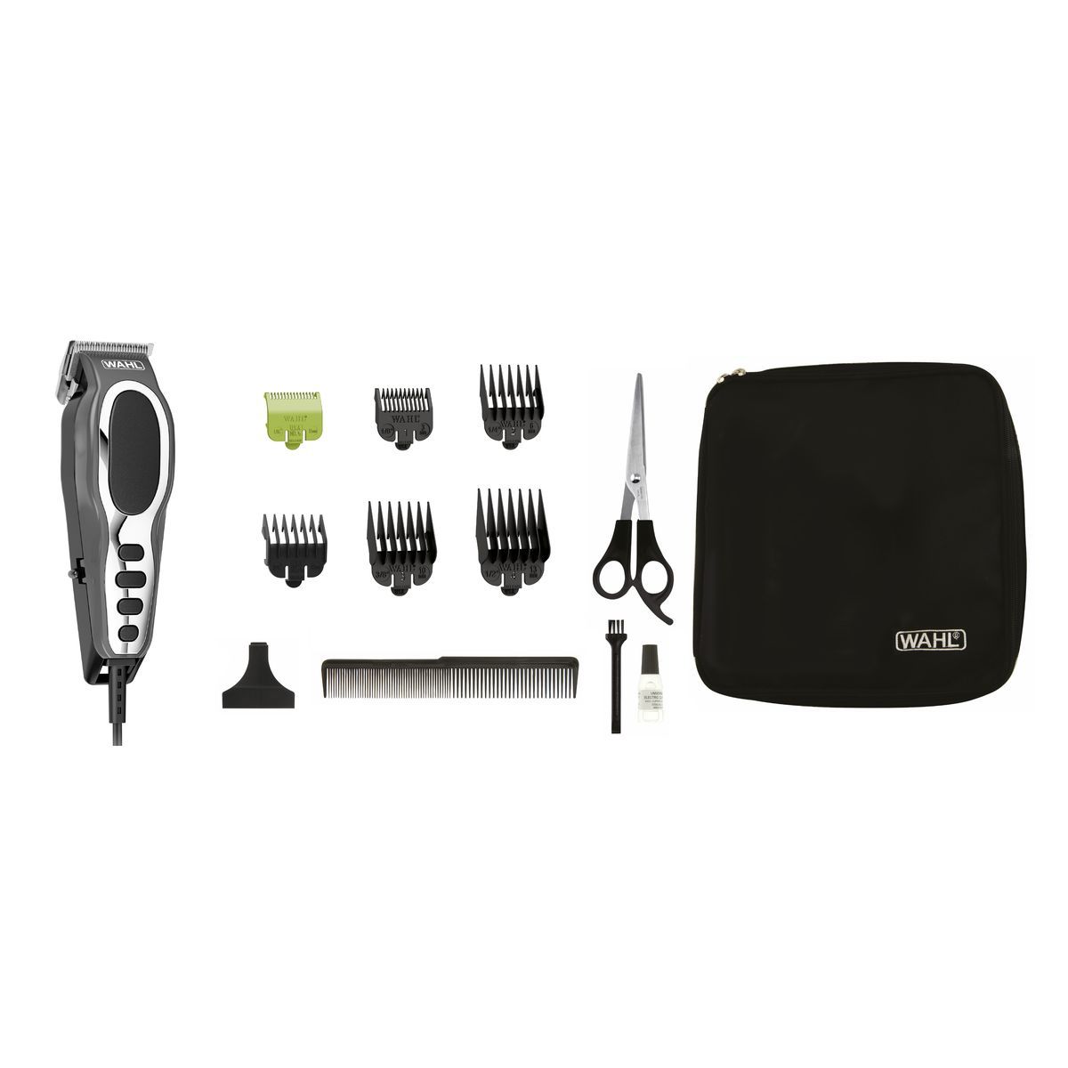 La tondeuse cheveux 20105.0460 de Wahl dispose de 6 sabots de 1,5 à 13 mm. Elle dispose d'une hauteur minimale de 0,6 mm et maximale de 13 mm. Les accessoires suivants sont inclus : un peigne et une brosse de nettoyage.