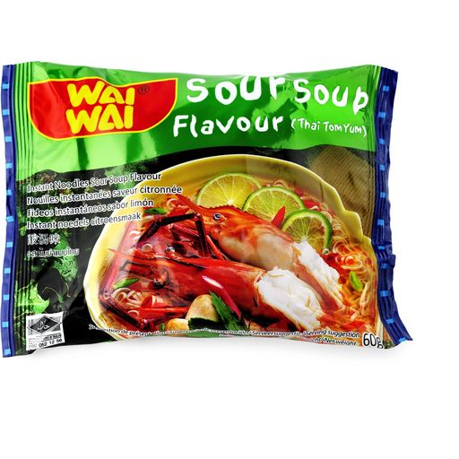 Les nouilles instantanées WaïWaï vous apportent les saveurs de la Thaïlande ! Puissante et parfumée, la recette citronnée vous offre le subtil équilibre d’un classique de la cuisine thaï populaire. Préparation alimentaire à base de blé tendre et sachet d’assaisonnement saveur citronnée