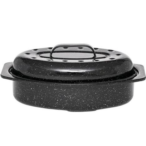 Warmcook 6106 La cocotte / Roaster 6106 GRANITEWARE de chez WARMCOOK est le modèle original, son corps est en acier carbone pour un poids plume facilitant les manipulations, le nettoyage et une parfaite distribution de la chaleur.