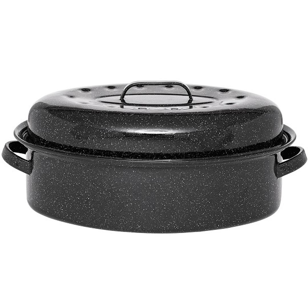 Warmcook 0509 La cocotte/Roaster ovale 0509 GRANITEWARE de chez WARMCOOK est le modèle original, son corps est en acier carbone pour un poids plume facilitant les manipulations, le nettoyage et une parfaite distribution de la chaleur.