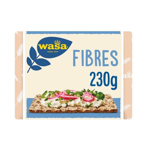 Wasa Fibres est une tartine croustillante à la farine complète de seigle, au son de blé, aux graines de sésame et à l'avoine. Les fibres issues du seigle contribuent au bon fonctionnement intestinal. 2 tranches de Wasa Fibres couvrent quasiment 30% des AJR en fibres ! Ce son et ces fibres supplémentaires lui donnent également un goût plus prononcé.