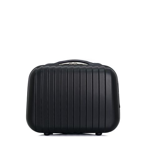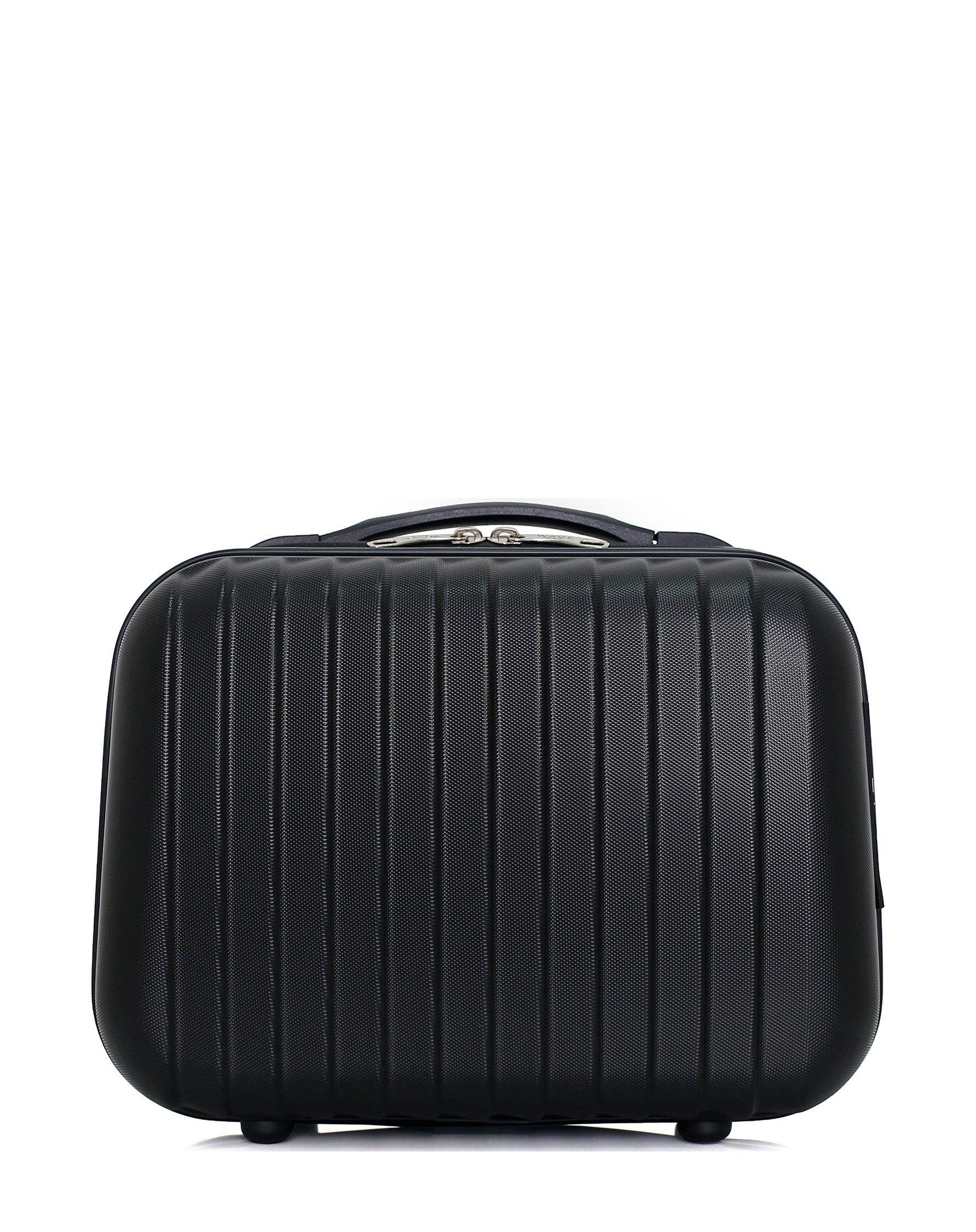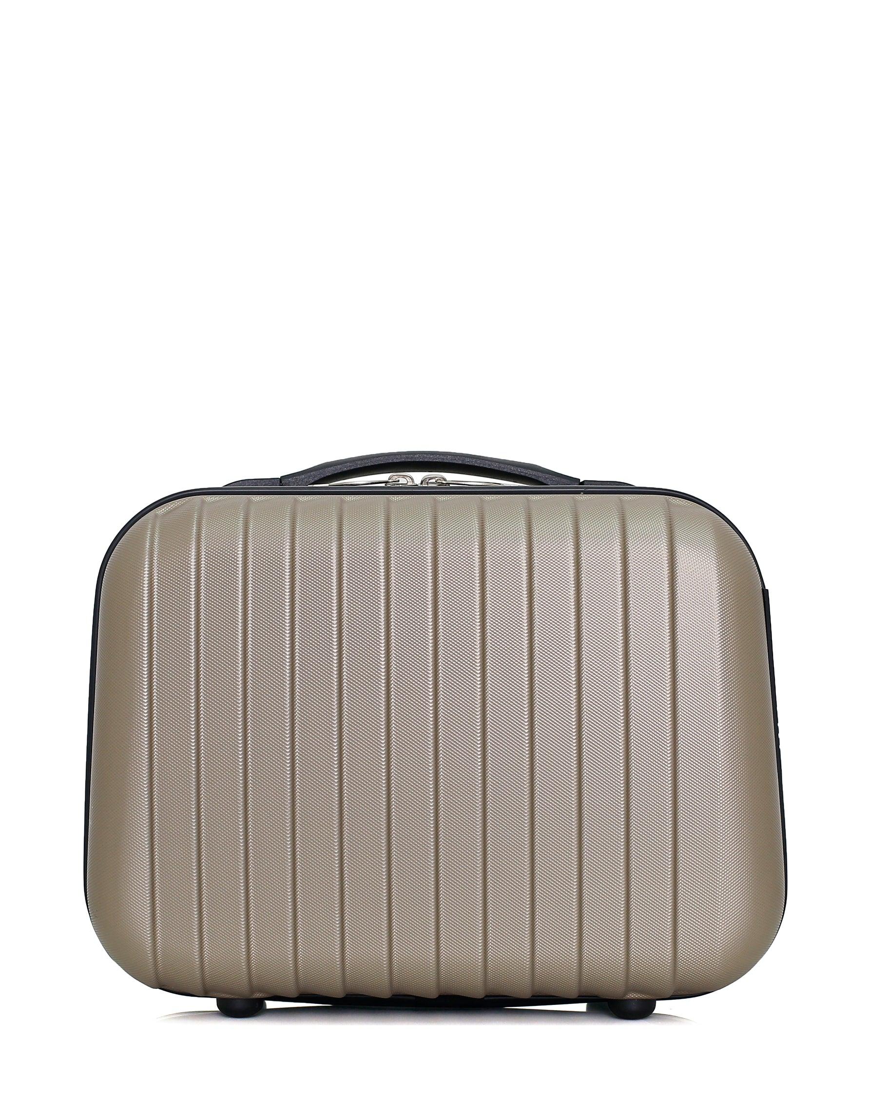 VANITY TAGE-KMarque WAVE PARISDimensions (H*L*P) : 30*23*16 cm , 11L , 0,8kg Revêtement extérieur : ABS, léger et résistantRevêtement intérieur : Polyester 190DRenforcements inférieursBagage équipé d'une poignée de portage haute renforcéeLining au design unique avec deux compartiments dont un zippé
