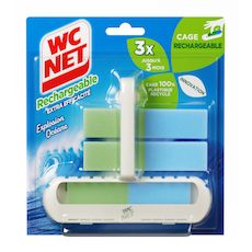 Premi re cage WCNET r utilisable. 1 cage, 3 savons, pour 3 mois, sans compromis sur le parfum et l'efficacit .