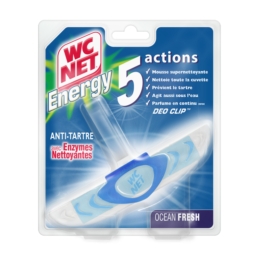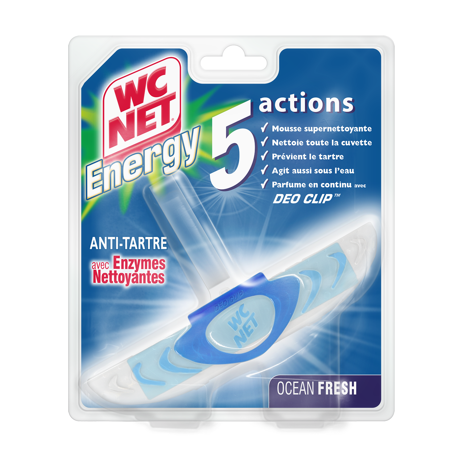 Un bloc surpuissant libérant une mousse supernettoyante, anti-tartre et parfumante. WC NET ENERGY BLOC ODEAN FRESH 38 GR