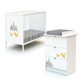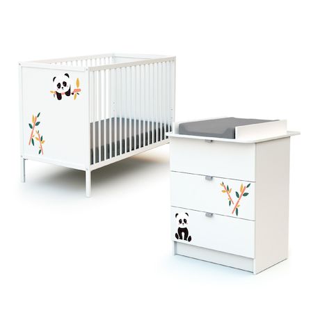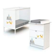 Composé d'un lit bébé 60 x 120 cm et d'une commode 3 tiroirs avec plan à langer amovible, vous êtes certains d'avoir l'essentiel pour son arrivée.