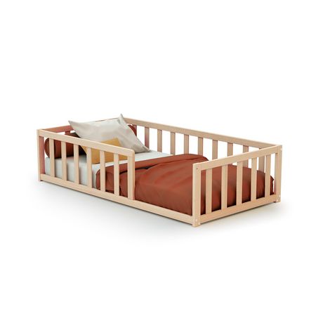 Avec ses petites barrières tout autour, ce beau lit enfant au sol est parfait pour que votre tout petit découvre les joies de l'autonomie et de la liberté en toute sécurité.