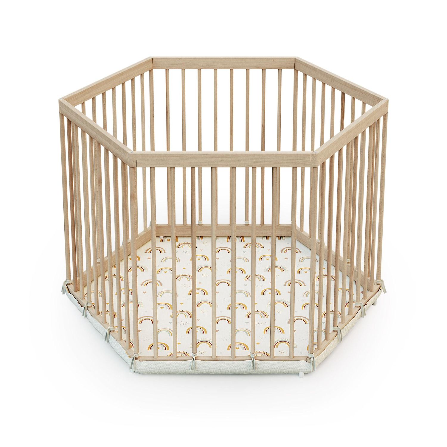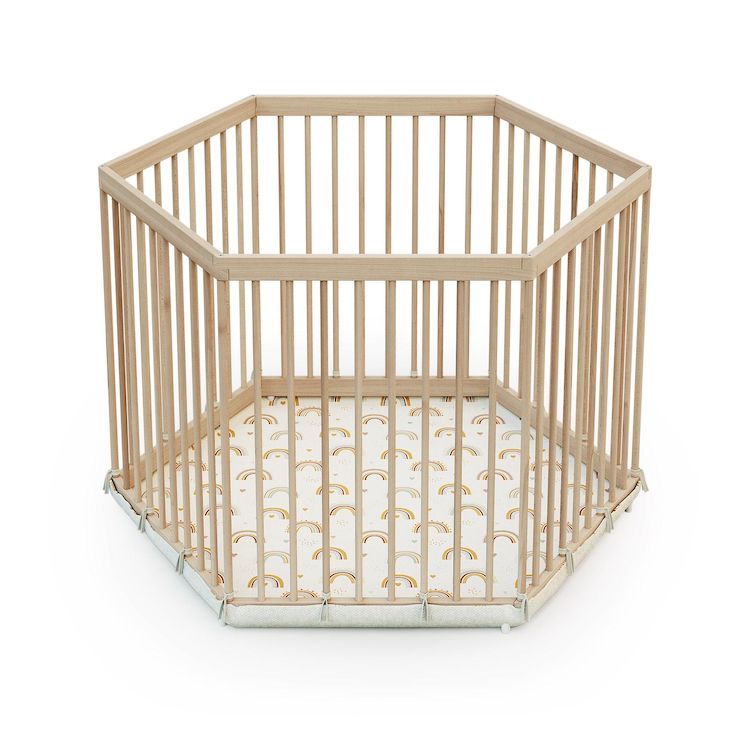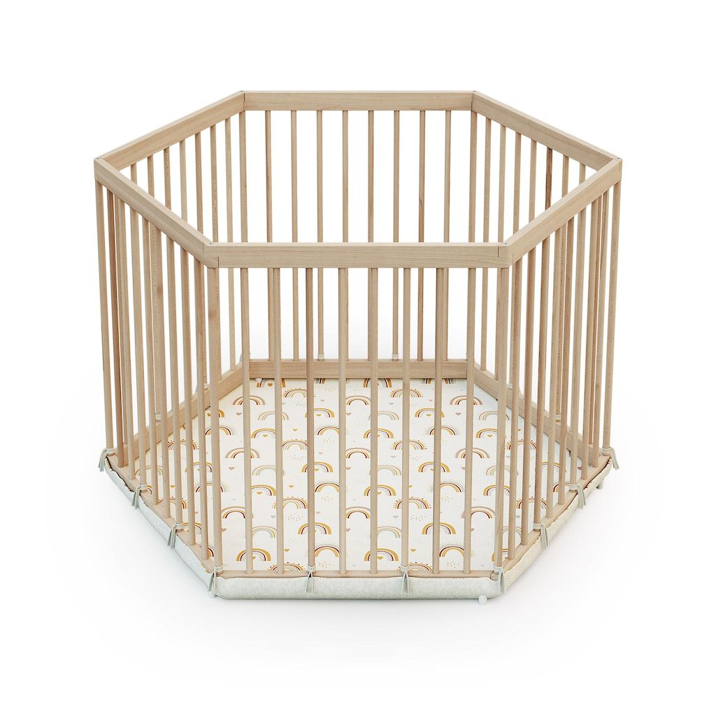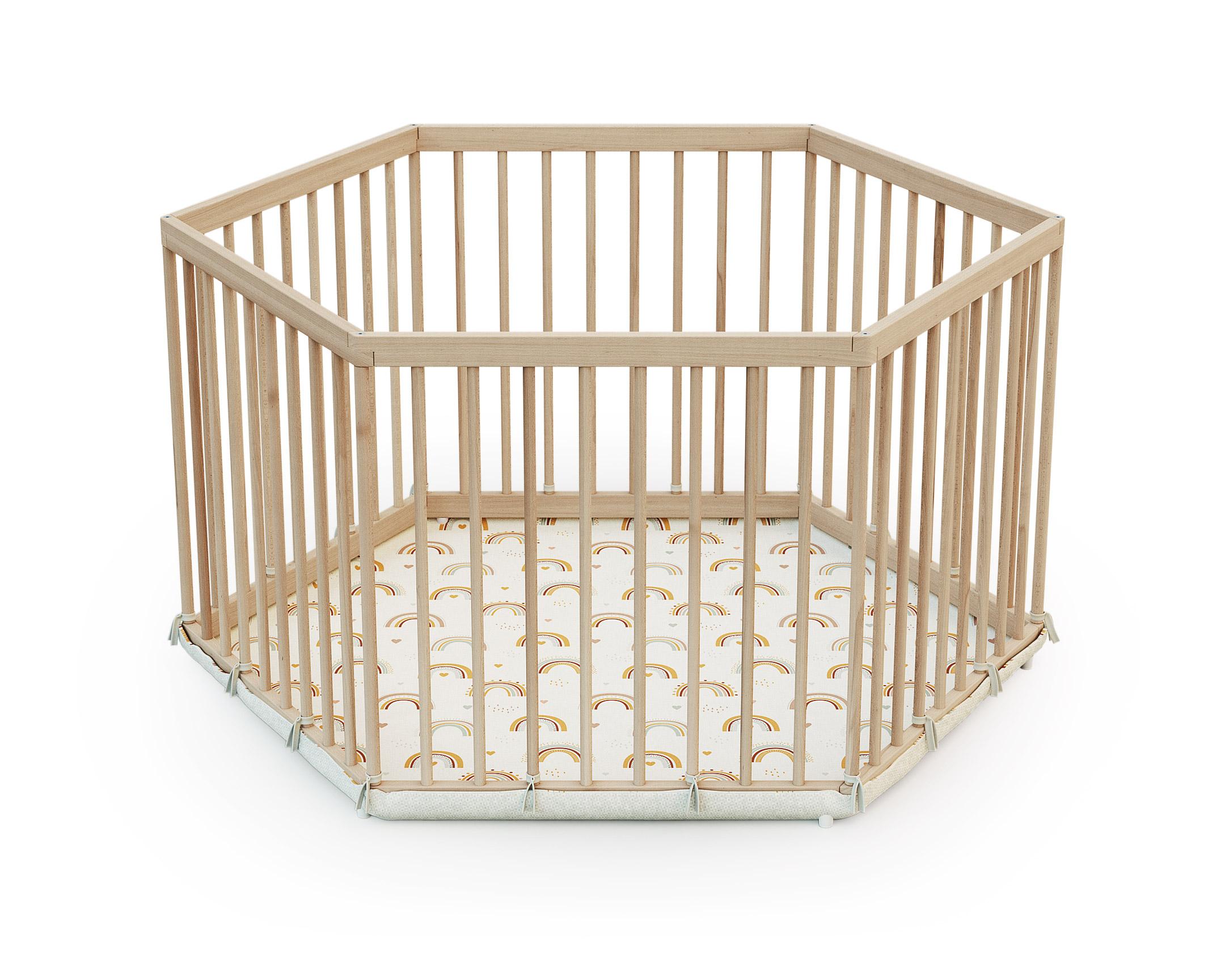 Parc bébé hexagonal en bois ALVEO - 125 x 109 x 65 cm
