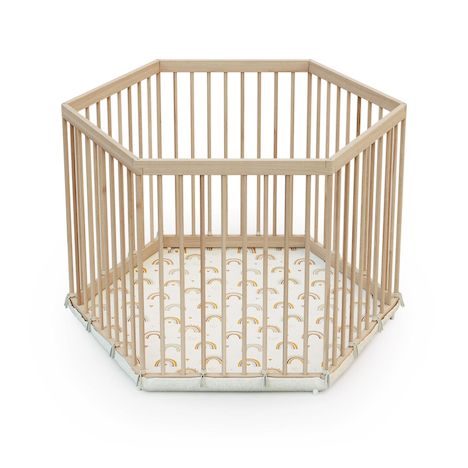 De forme hexagonale, ce parc en bois pour bébé 125 x 109 x 65 cm offre un bel espace pour jouer et grandir en toute sécurité.