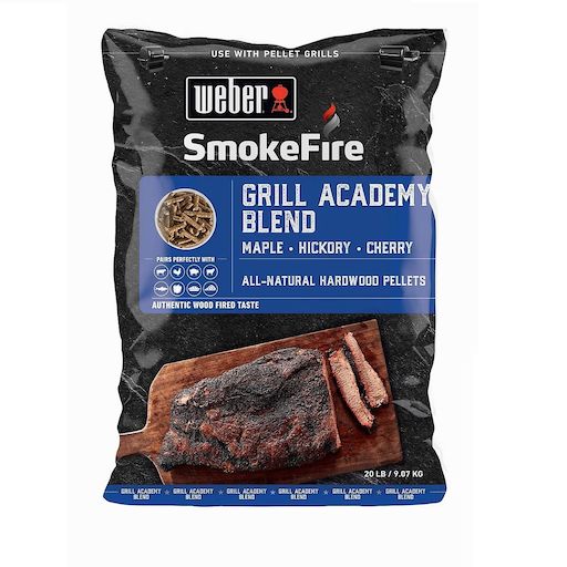 Weber 190101 Les pellets (granulés de bois) SmokeFire 190101 de Weber ont été soigneusement crées pour un barbecue. Conçus sans liants, juste un authentique goût boisé. 34 % érable, 33 % hickory, 33 % cerisier. Équilibré et savoureux avec un fini doux et sucré. Se marie bien avec : boeuf, volaille, porc, agneau, gibier, fruits de mer, légumes, pâtisseries et pizza.