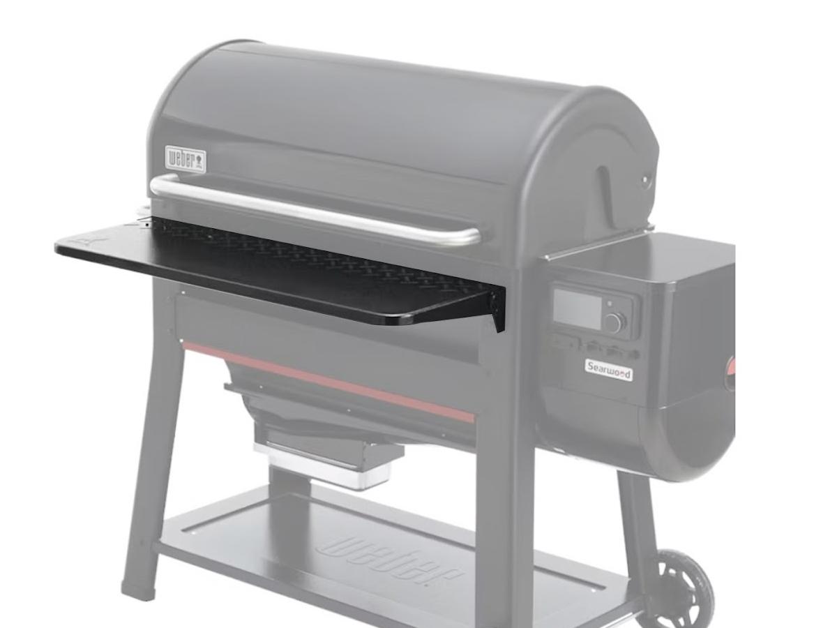 Optimisez votre barbecue à pellets Searwood 600 XL avec cette tablette frontale rabattable Weber. Facile à fixer, elle offre un espace de travail supplémentaire pour préparer vos plats, poser vos condiments ou vos ustensiles.