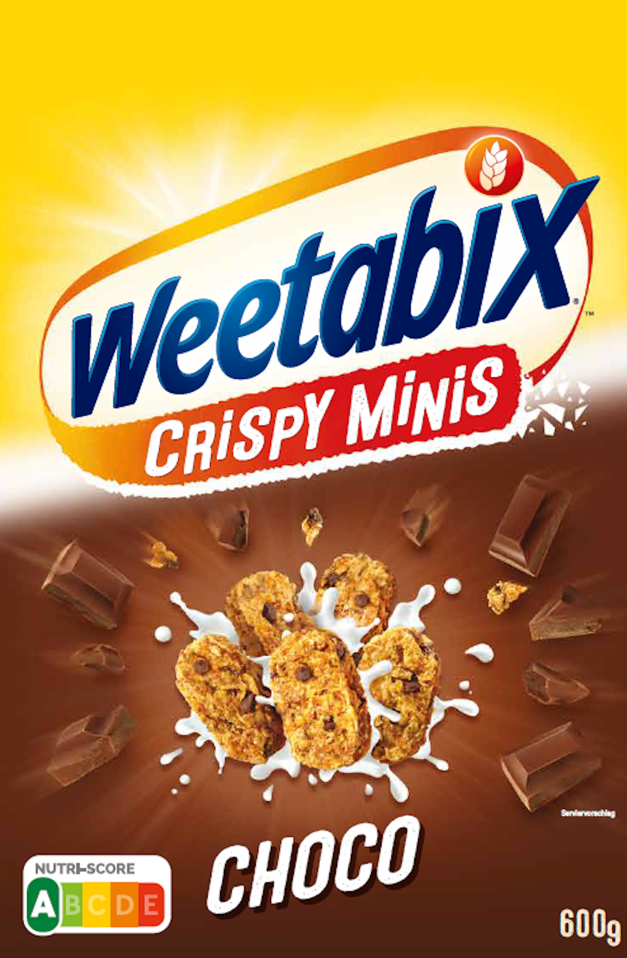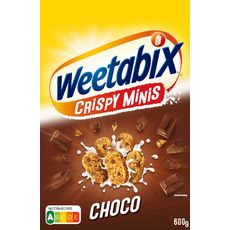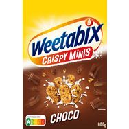 cérales pour adultes et adolescents, à base de 89% de blé complet avec des pépites de chocolat Weetabix Crispy Minis choco 600g