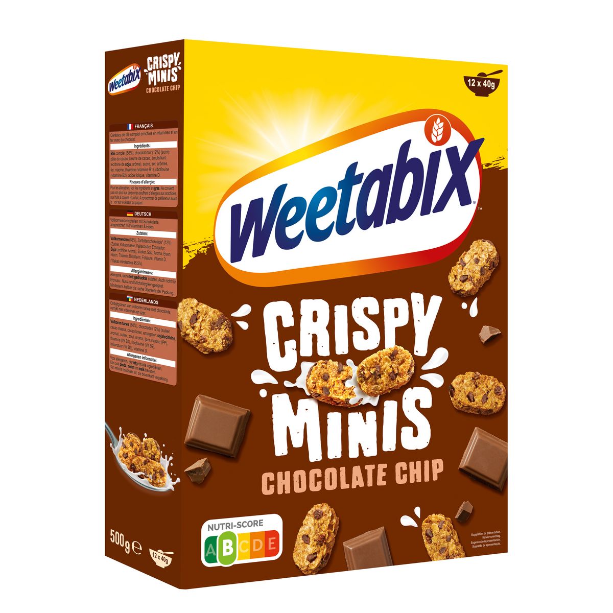 Délicieuses et croustillantes bouchées de blé complet enrichies de pépites de chocolat qui font l'unanimité au petit-déjeuner. Elles peuvent aussi être consommées en snacking. Riches en fibres ce produit est nutriscore A.