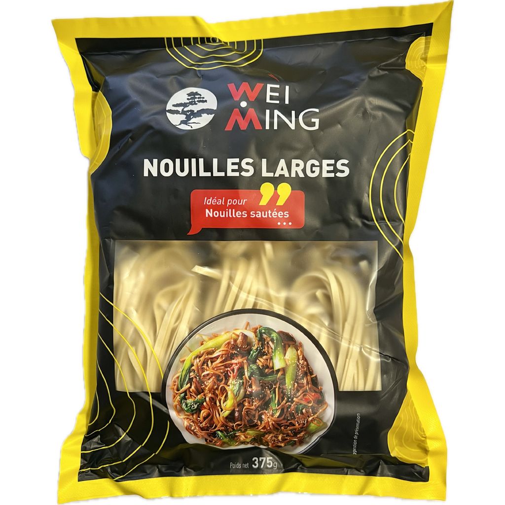 Les nouilles larges Wei Ming, c'est le secret pour des plats sautés vraiment réussis. Elles ont cette texture parfaite, à la fois moelleuse et ferme, En quelques minutes, vous obtenez un plat savoureux et réconfortant, parfait pour un repas rapide avec du goût.