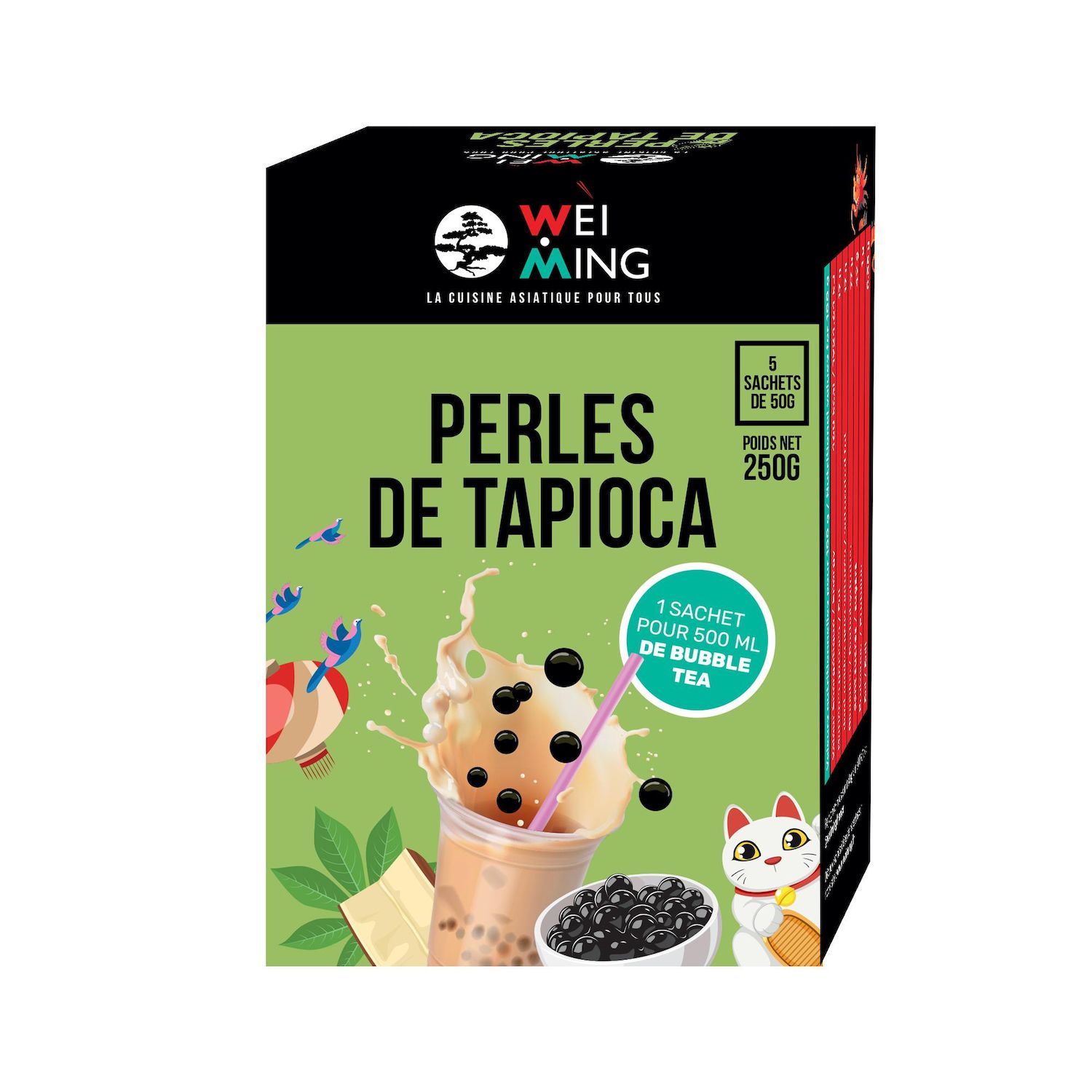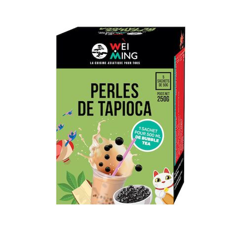 Si vous aimez préparer des desserts asiatiques ou des bubble tea maison, vous allez adorer les perles de tapioca Wei Ming. Elles sont conditionnées en 5 sachets pratiques de 50 g, ce qui permet de doser facilement la quantité dont vous avez besoin. Elles offrent une texture parfaite : moelleuse et légèrement élastique, pour des recettes qui réussissent à tous les coups.