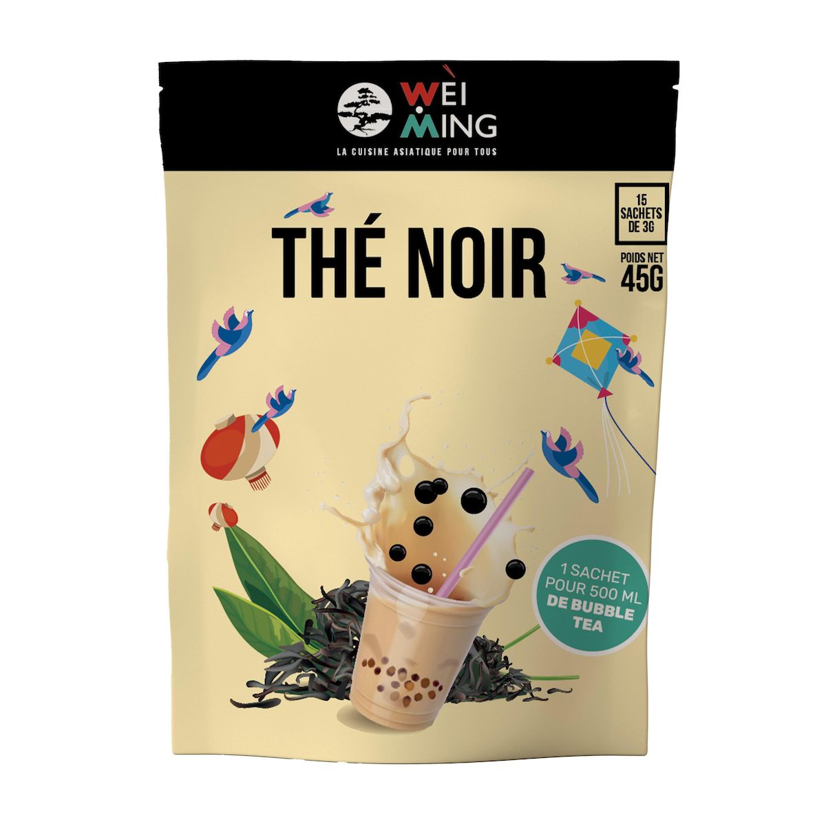 Pour réaliser un bubble tea, agrémentez votre thé de poudre aromatisée, de sirop et de perles de tapioca ou de perles de fruits Wei Ming de votre choix. A siroter avec une paille XXL.