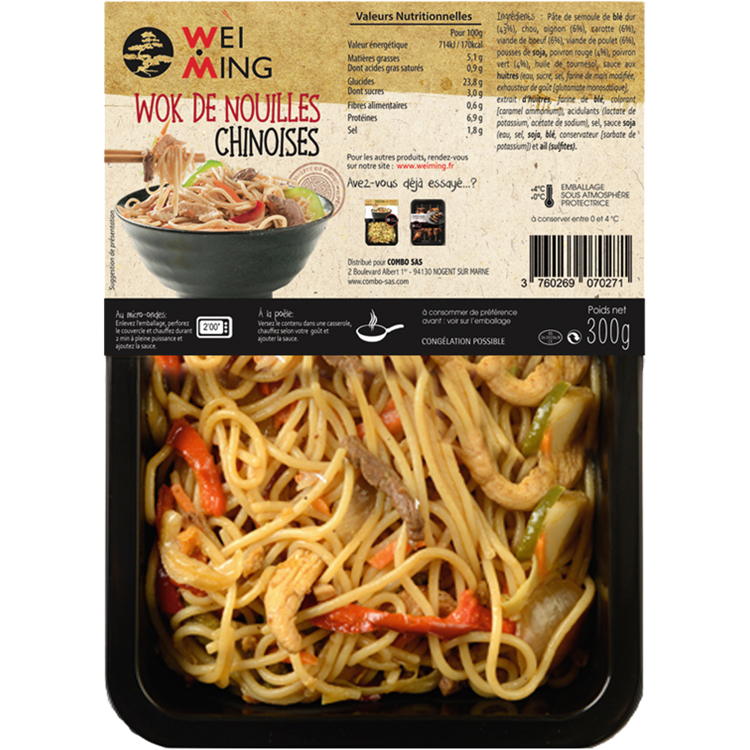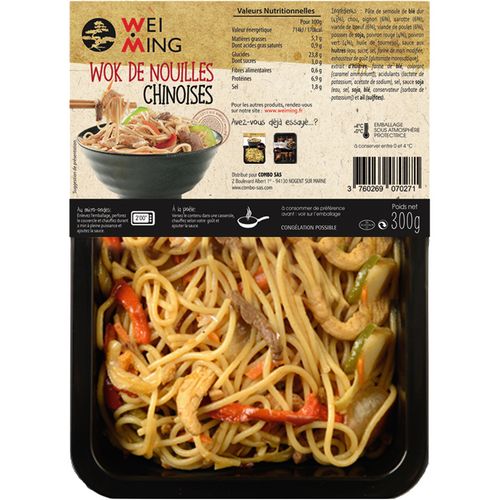 J'ai voulu tester ces nouilles chinoises dont la photo mettait en appétit. C'est bon, c'est exotique sans trop en faire, la photo est un peu trompeuse (beaucoup moins de viande en réalité que ce qu'elle montre). Le réchauffage au four micro-ondes donne de bons résultats... mais j'ai également essayé de les faire réchauffer et un peu griller à la poêle : le côté croustillant de certaines nouilles donne alors plus d'authenticité et de véracité à ce plat. C'est suffisamment copieux pour une assiette mais ne songez pas à faire deux parts de cette barquette. Une bonne surprise !