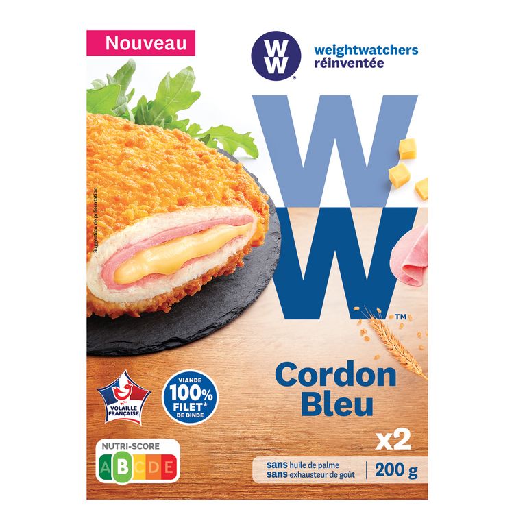 Ingrédients : Viande de filets de dinde traitée en salaison : 58 % (viande de filets de dinde origine France : 48 %, eau, protéine de BLÉ, sel, arôme naturel d’ail et d’autres arômes naturels), panure : 22 % (eau, farine de BLÉ, levure, sel, épices), jambon de dinde standard : 10 % (viande de dinde origine France : 7 %, eau, fibre de BLÉ, dextrose, sel, arôme naturel, extraits végétaux (bette, carotte), ferments, gélifiant : carraghénanes, antioxydant : ascorbate de sodium), FROMAGE fondu : 10 % (FROMAGES : 5 %, eau, poudre de LAIT écrémé, protéines de LAIT, sels de fonte : citrates de sodium, BEURRE, arôme naturel). Huile de tournesol.