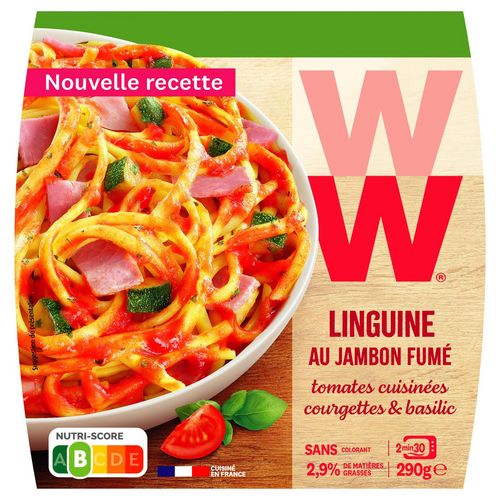 Linguines au jambon fumé, courgettes grillées, crème légère et basilic 290G WW