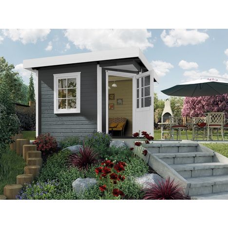 L'abri de jardin design WEKA 213, apporte un charme dans votre jardin avec sa construction moderne à cinq côtés. Couleur anthracite.Surface utile : 5,5m² Les madriers en épicéa d’une épaisseur de 28 mm de haute qualité assurent une solidité et une stabilité optimale, un plancher et des voliges en bois massif de 19 mm. 1 grande fenêtre et une porte simple à cadre de haute qualité, une entrée d'angle peu encombrante. Porte simple : L 81 cm x H 173 cm, serrure à cylindre, 3 clés inclus. Fenêtre oscillo-battante avec un verre véritable. Mode de construction : assemblage d'angle moderne à fixer par vissage, gain de place. Sous construction résistante aux intempéries. Revêtement toiture : feutre bitumeux pour première couverture.