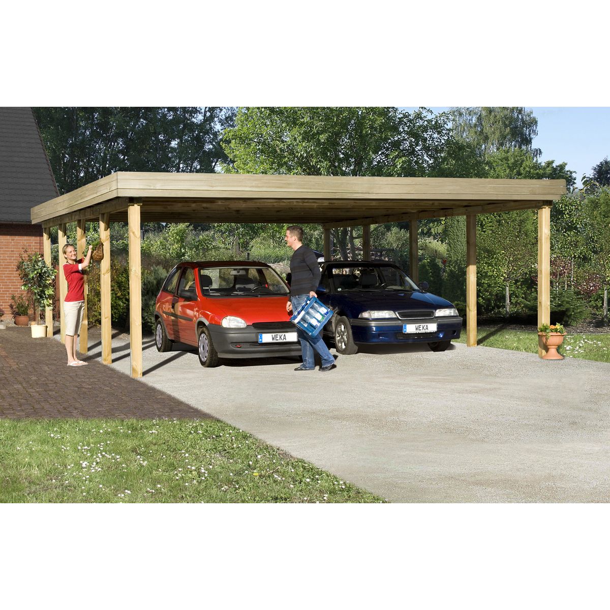 Carport toit plat - Bois traité autoclave - 2 voitures - 45,16 m²