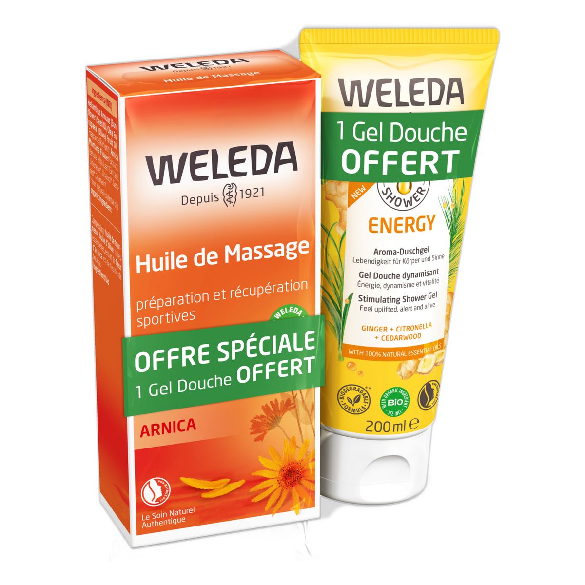 Coffret gel douche energy et huile de massage à l'arnica