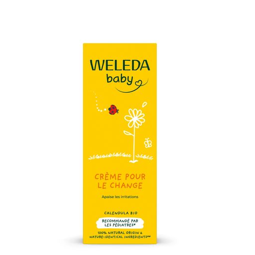 La Crème pour le Change au Calendula bio Weleda réduit les rougeurs et apaise l'épiderme fragilisé du siège de bébé, dès la naissance. Elle protège la peau sensible lors du changement de couches et calme les irritations. Un mélange d'huile d'amande douce et d'huile de sésame bio préserve la douceur de l'épiderme. Les extraits de fleurs de Calendula bio et de Camomille bio calment les rougeurs grâce à leurs vertus apaisantes. La cire d'abeille bio forme un léger film protecteur, non occlusif. Produit recommandé par les pédiatres. Tolérance cutanée testée sous contrôle dermatologique.