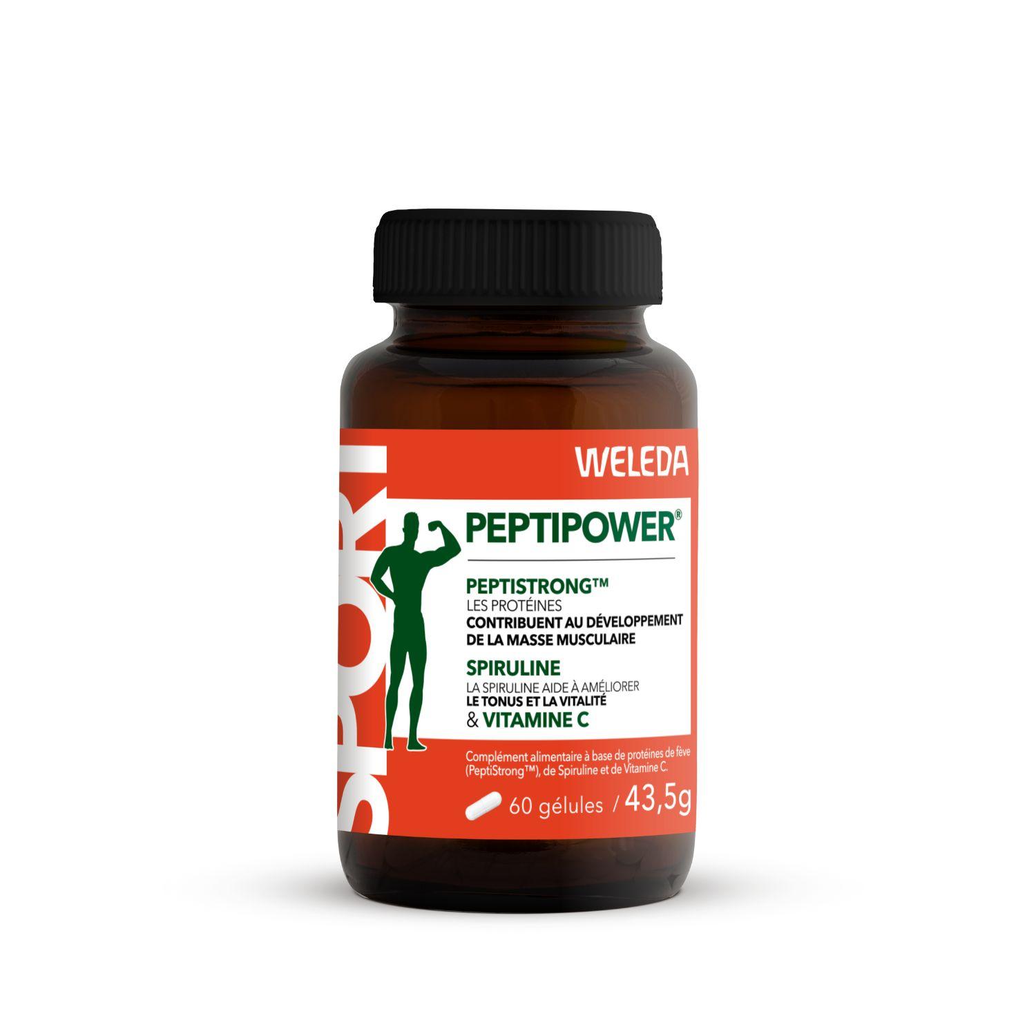 [Cet avis a été recueilli en réponse à une offre.] Le complément alimentaire PeptiPower de Weleda se présente sous forme de gélules 100 % végétales. Elles sont composées à base de protéines de fèves, de spiruline et de vitamine c. L'association de ces trois éléments permet de favoriser la récupération musculaire et d'augmenter la force tout en apportant une énergie immédiate. C'est un complément alimentaire qui ne vous permettra pas de prendre du muscle mais plutôt de mieux réparer vos muscles après un entraînement. Il peut être également utile pour augmenter votre apport protéique quotidien et favoriser le maintien et la reconstitution musculaire. La vitamine c est la spiruline agissent efficacement sur le tonus et l'énergie à court et à plus long terme. Le nombre de gélules à consommer par jour dépend de vos objectifs. Un flacon permet donc de répondre à des besoins sur une durée assez courte entre 7 et 15 jours. C'est pour moi le seul petit défaut de ce produit qui nécessite de consommer un nombre conséquent de gélules. La marque pourrait proposer des contenants plus grands pour une cure plus longue. Au niveau efficacité, je trouve que c'est un excellent produit qui tient ses promesses. En effet depuis que je l'utilise je me sens plus en forme et plus disponible lors de mes entraînements. Et j'ai l'impression de mieux récupérer musculairement, d'avoir moins de douleur et de moins subir les lendemains d'entraînement. C'est un produit de qualité, fidèle à la marque et totalement naturel et végétal, ce qui est vraiment un point très positif.