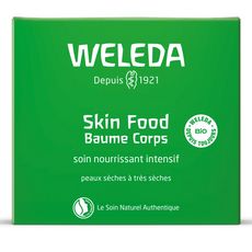 Le Baume Corps Skin Food nourrit intensément les peaux sèches à très sèches. Ce soin à la fragrance unique et envoûtante, issue d'extraits de benjoin, d'orange et de lavande, protège la peau du désèchement. Le Baume Corps Skin Food a été élu Meilleur soin SKIN CARE dans la catégorie GREEN lors des « ELLE International Beauty Awards 2022 ». Sa formule aux ingrédients naturels et bio est enrichie en plantes médicinales : les extraits de pensée sauvage, de calendula bio et de camomille bio apaisent et adoucissent les peaux les plus sèches, tandis que les beurres de karité bio et de cacao bio nourrissent intensément la peau. Ce baume à la texture fondante pénètre rapidement sans laisser de film gras, pour offrir à la peau tout le confort, la douceur et le bien-être qu'elle mérite !