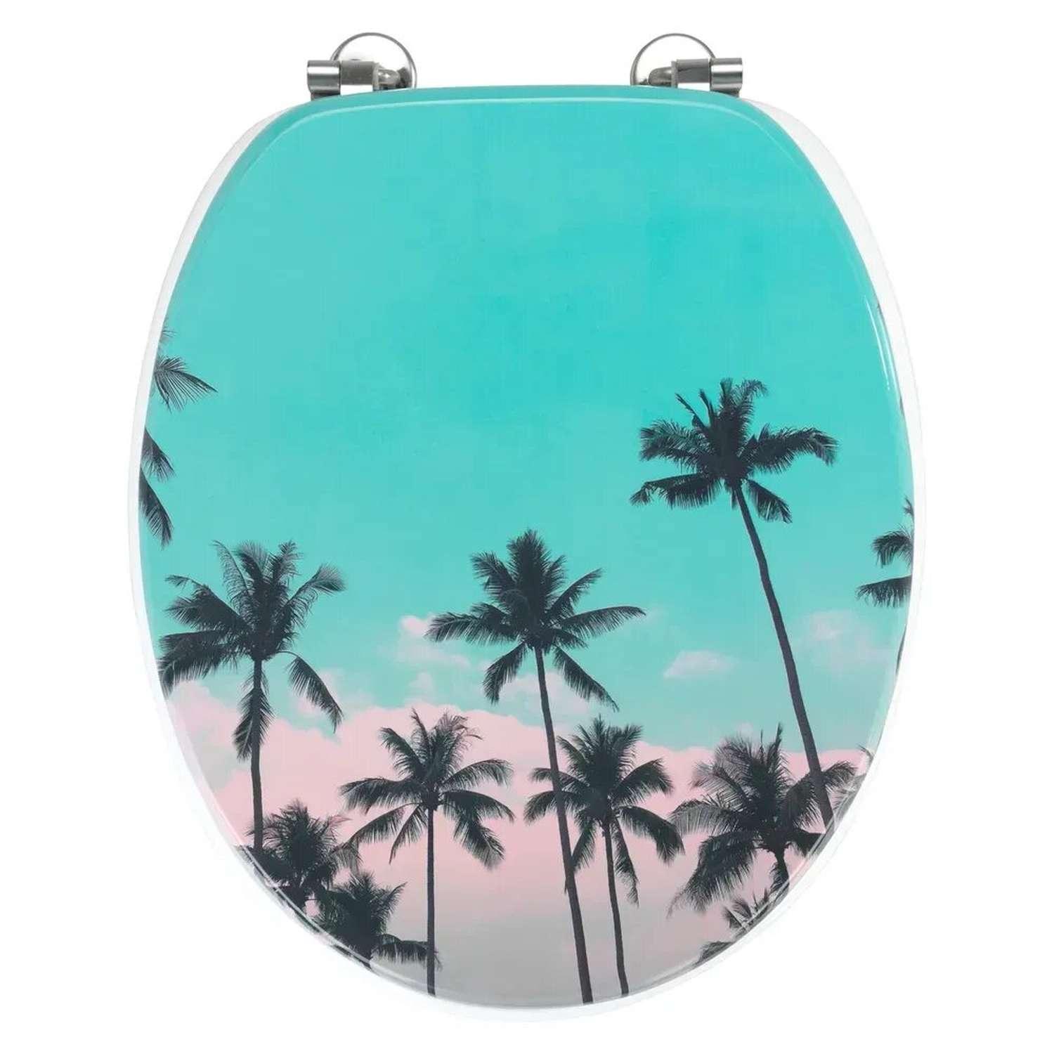 Optez pour le confort et la durabilité notre abattant WC en bois motif palmiers Son montage rapide et simple en fait le choix idéal pour tous les types de toilettes courantes du commerce.