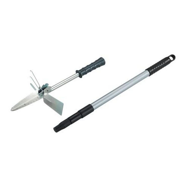Accessoire jardinage multifonctionnel avec manche télescopique - Noir et gris