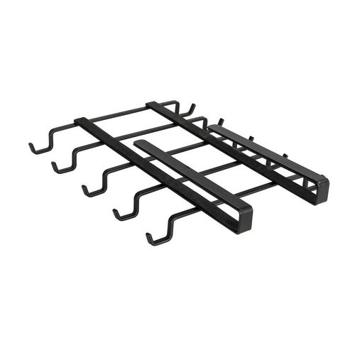 Lorsque l'espace dans la cuisine est calculé trop juste, le porte-tasses décoratif noir est une alternative pratique pour ranger un maximum de tasses dans l'armoire ou sous l'étagère, de manière ordonnée et peu encombrante. Une poignée permet de sortir le support à nouveau en cas de besoin. Les gobe