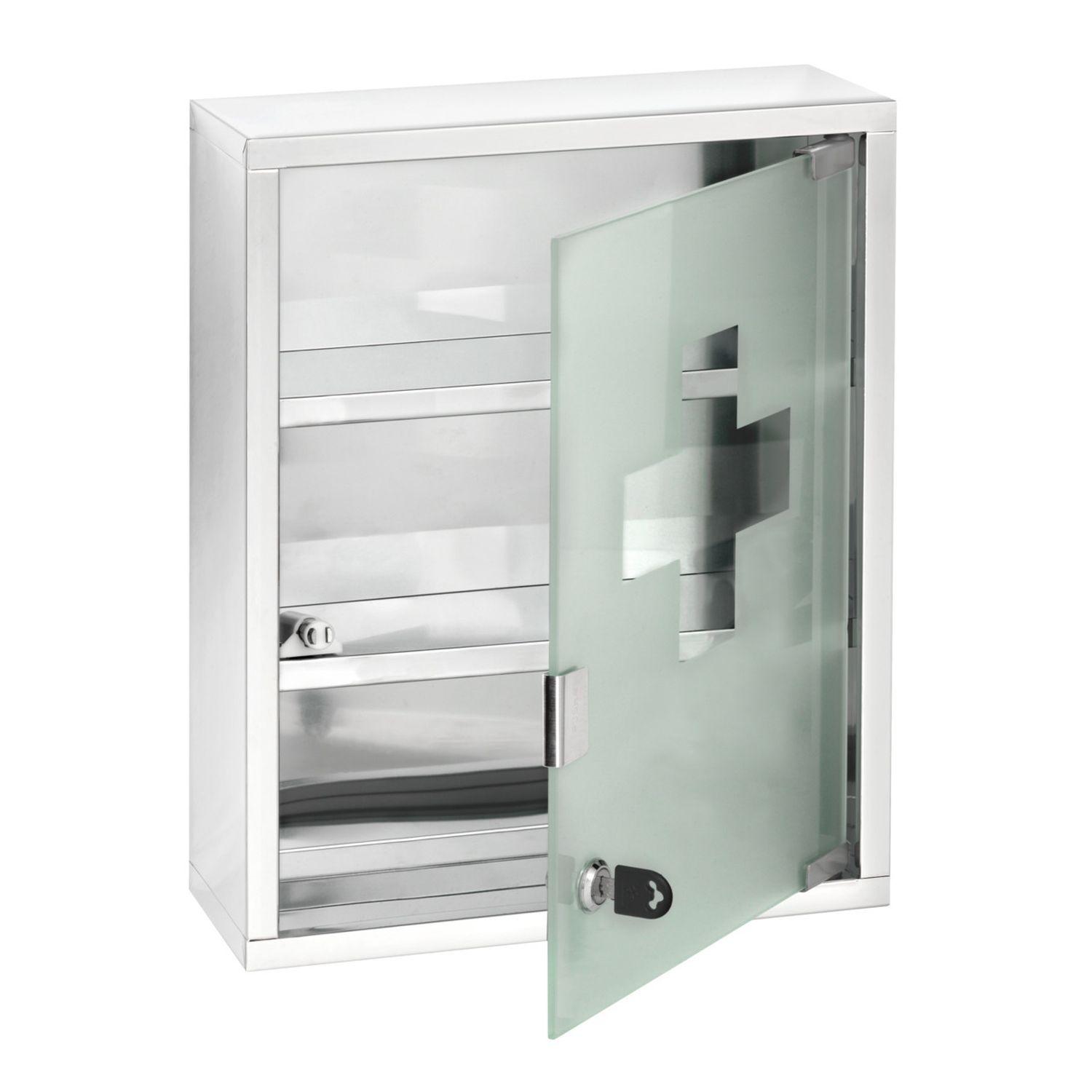 Gardez à portée de main et de manière sécurisée vos médicaments grâce à cette armoire à pharmacie.FICHE TECHNIQUE- Armoire en acier inoxydable.- Porte de l'armoire en verre.- Espace de rangement sur 3 étages avec porte verrouillable pour la protection des médicaments.- Vis et chevilles pour la fixat